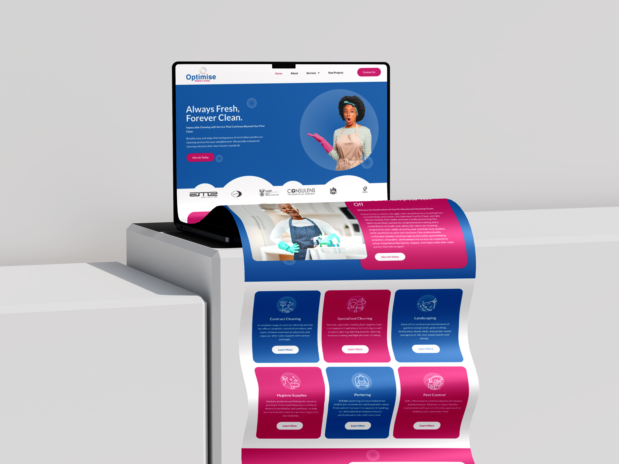 I designed and developed a clean, service-driven website for Optimise Group (Optimise Freshly Clean), a black women-led facilities and cleaning solutions provider operating across South Africa. The goal was to translate a hands-on, operational business into a polished digital platform that communicates professionalism, reliability, and scale.