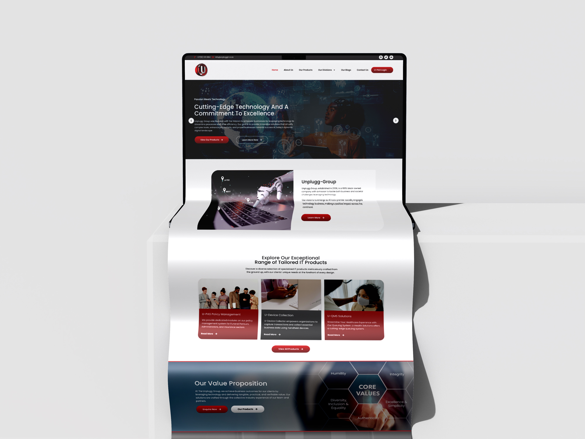 I designed and developed a clean, corporate website for Unplugg Group, a forward-thinking, 100% black-owned technology company established in 2006. The goal was to translate their mission of solving business and societal challenges through technology into a modern digital experience.